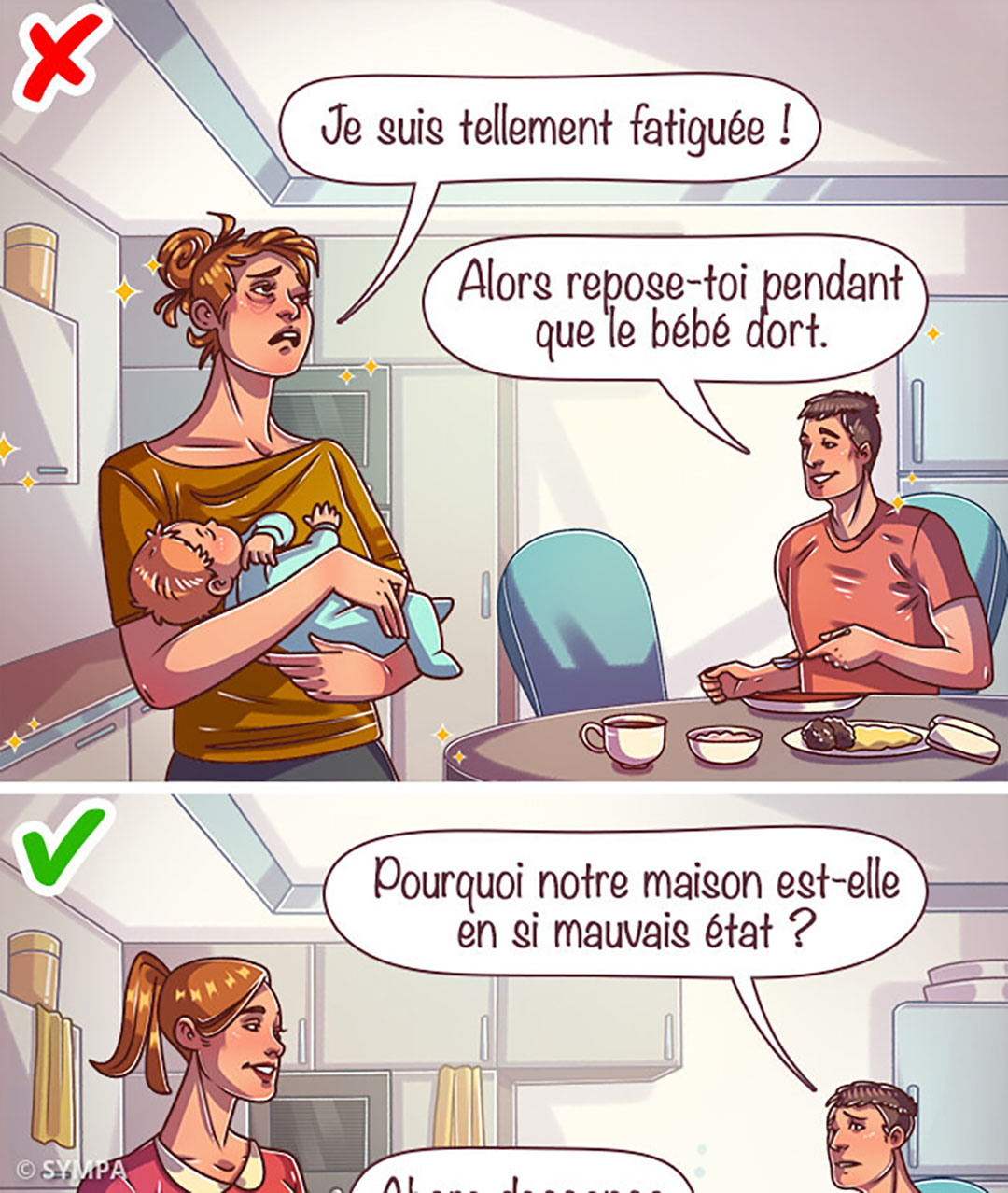 Voici 10 suggestions fréquemment entendues – qui, malgré leur bonne intention, risquent surtout de **créer tension ou malaise** chez les jeunes parents.