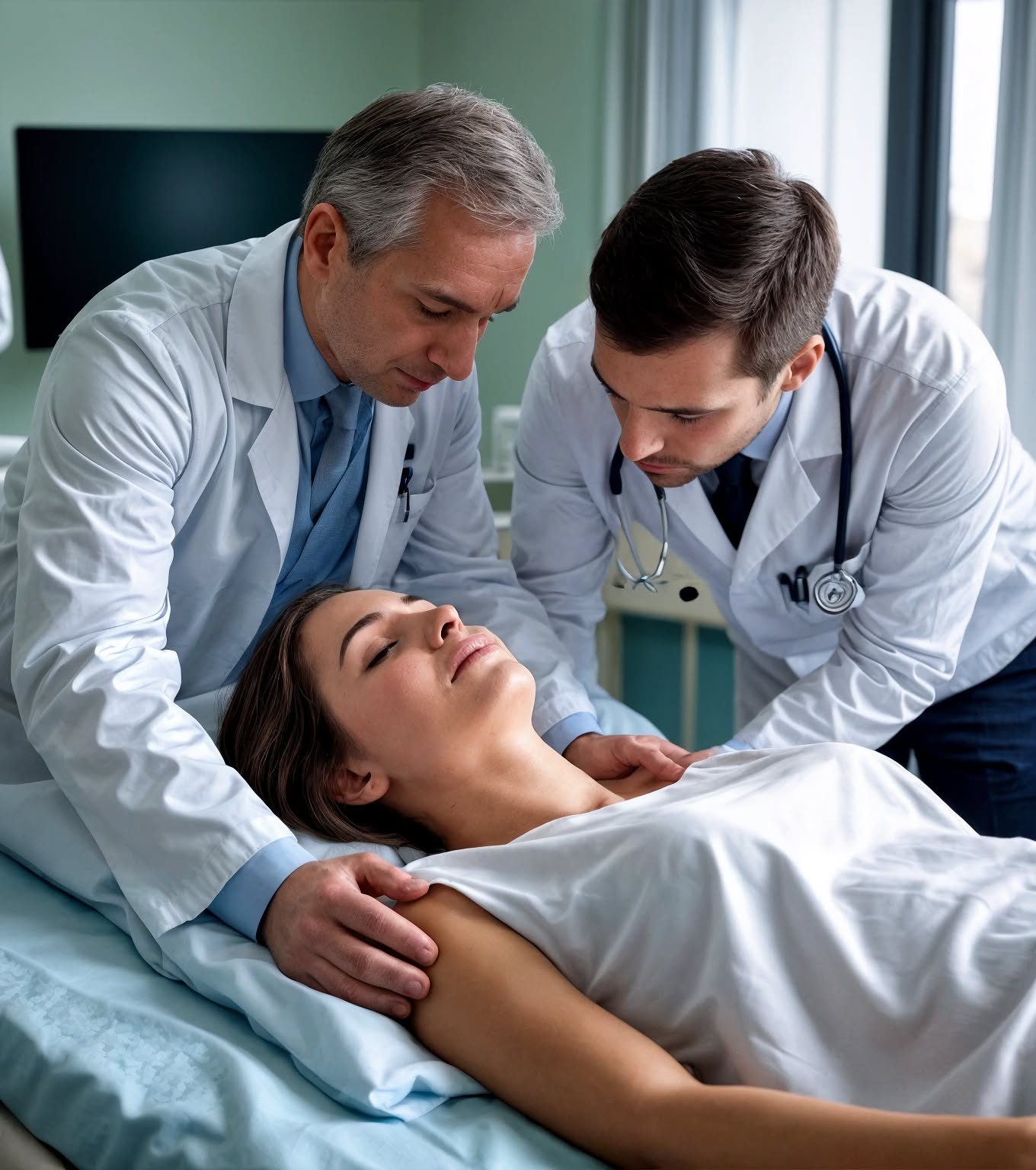 La ville, enveloppée de sombres ombres, respirait d’un silence lourd et étouffant, seulement brisé par le hurlement lointain d’une ambulance. Entre les murs de l’hôpital, où chaque couloir résonnait encore des échos de souffrances passées, grondait une tempête aussi violente que l’orage derrière les vitres. La nuit n’était pas seulement tendue — elle semblait prête à éclater, comme si le destin lui-même voulait mettre à l’épreuve ceux qui veillaient sur la vie.