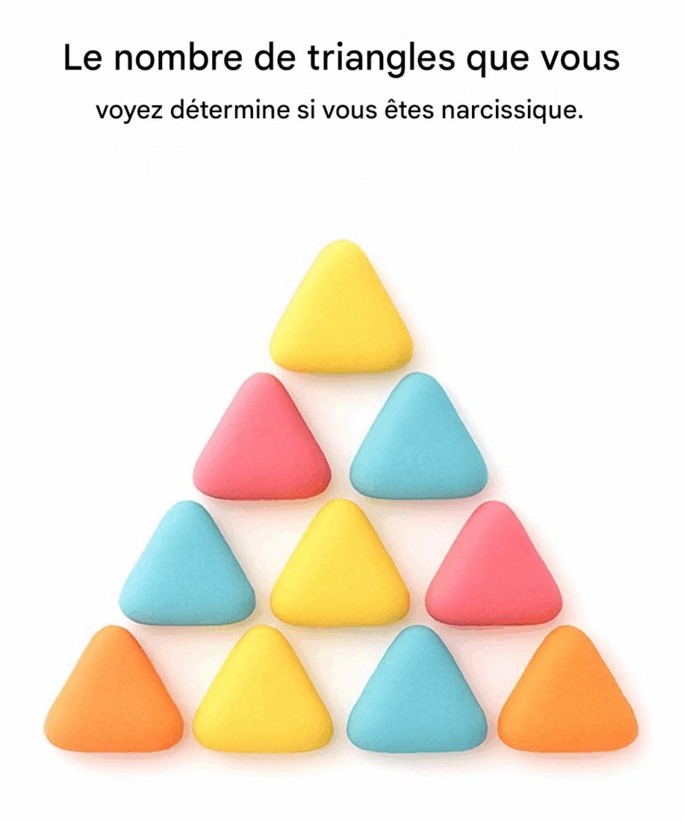 À première vue, l’image ci-dessus semble simple : juste quelques triangles colorés empilés ensemble. Mais si vous regardez plus longtemps, vous pouvez commencer à compter différemment. Certains voient 9 triangles, d’autres 13, et certains prétendent en voir plus de 20 lorsqu’ils commencent à additionner toutes les formes cachées.