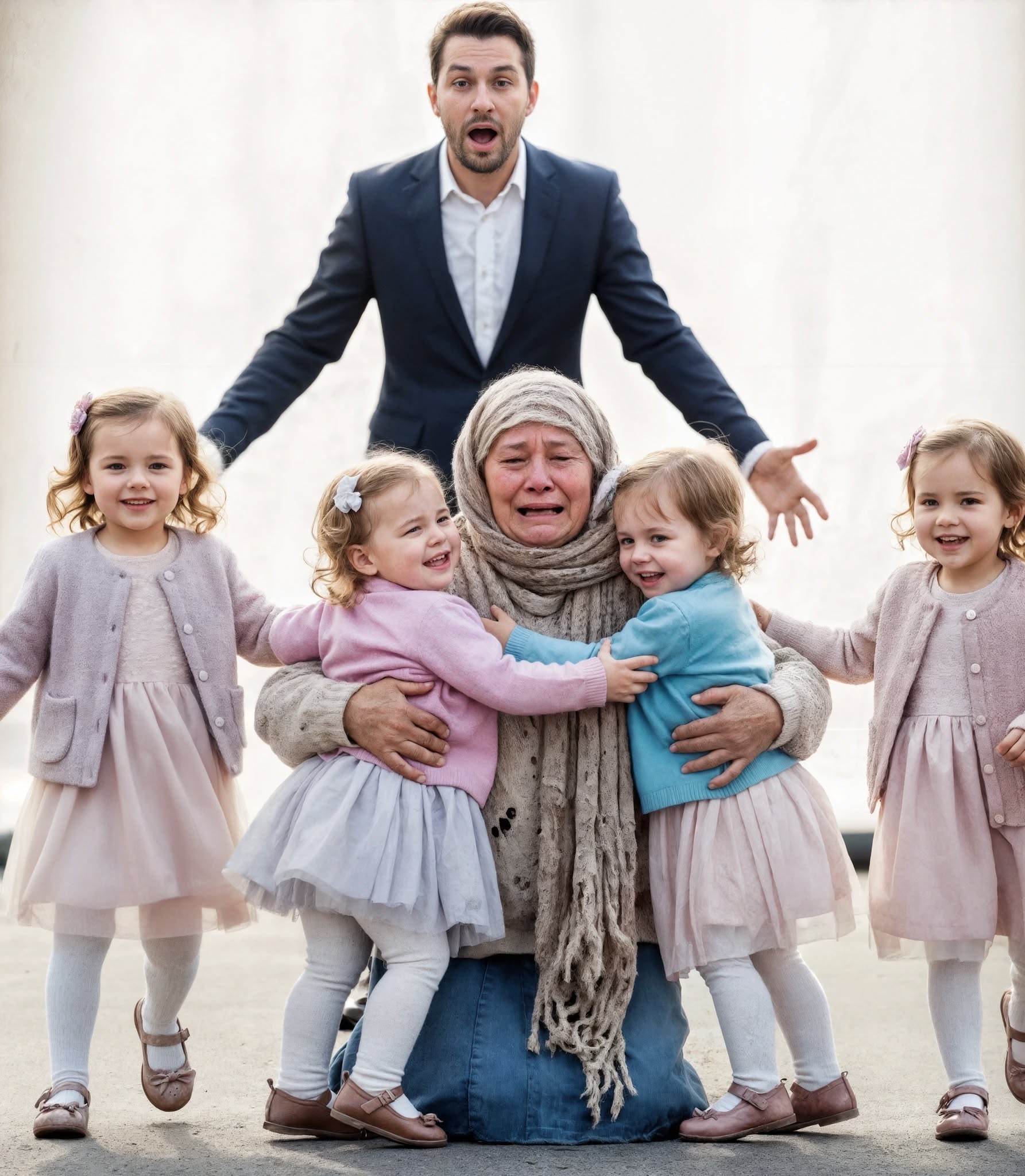 Je consultais mes e-mails sur mon téléphone pendant que notre nounou, Mia, leur tenait la main près des fontaines. Aubrey, Lila et Maren — des triplées de quatre ans en robes rouges assorties — restaient d’ordinaire collées à un adulte, comptant leurs pas et effleurant du bout des doigts chaque banc, chaque rebord.